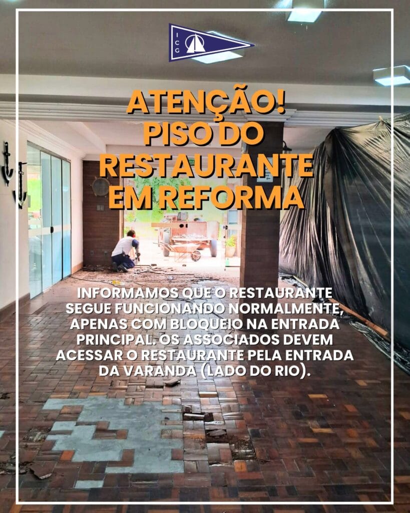 Atenção, informamos o piso do Restaurante está sendo reformado. O atendimento segue normal, apenas com bloqueio na entrada principal. Os associados devem acessar o restaurante pela entrada da varanda (lado do rio).